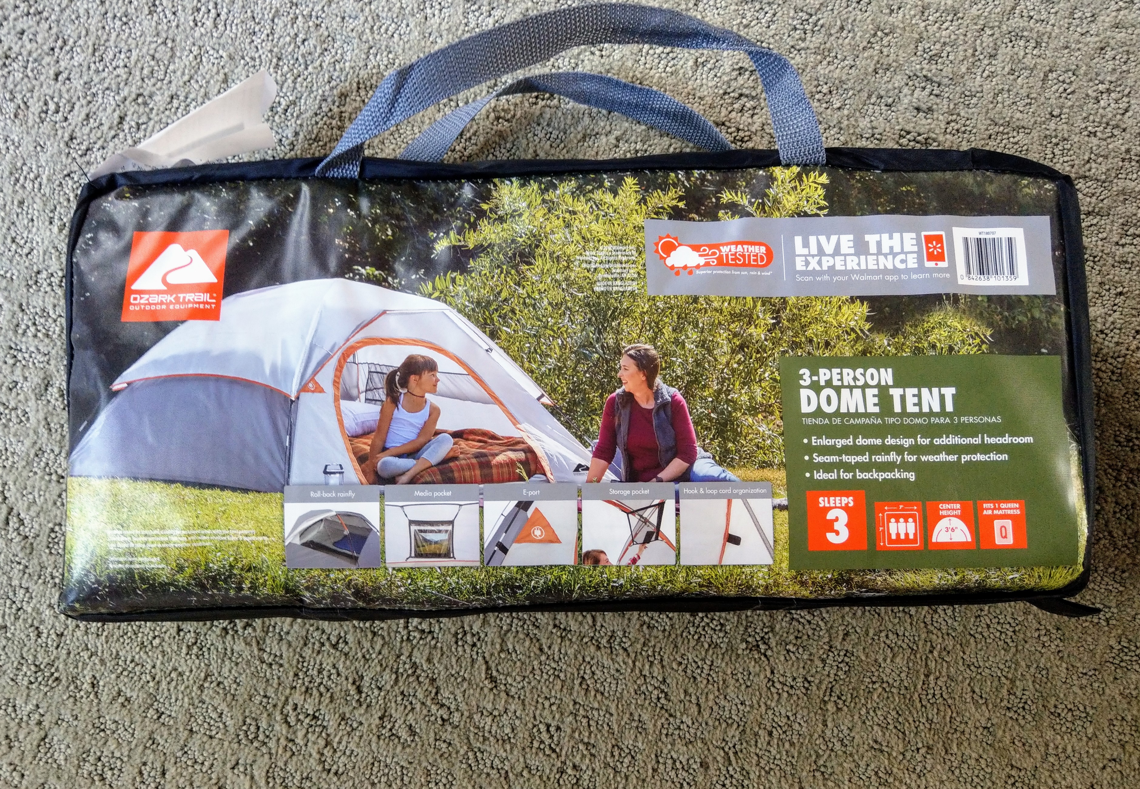 I went down to Walmart and picked up a 3 man dome tent for a crazy cheap $24. As I mentioned previously, I was going to grab a small backpacking tent, but comparing this to some other tents, it was a very similar size and weight. Plus, I want something that Mrs OnTheBackWheel and my dog can use and this give us the extra space. Besides, Killer Croc is over 400lbs, I don’t think another pound is going to matter!