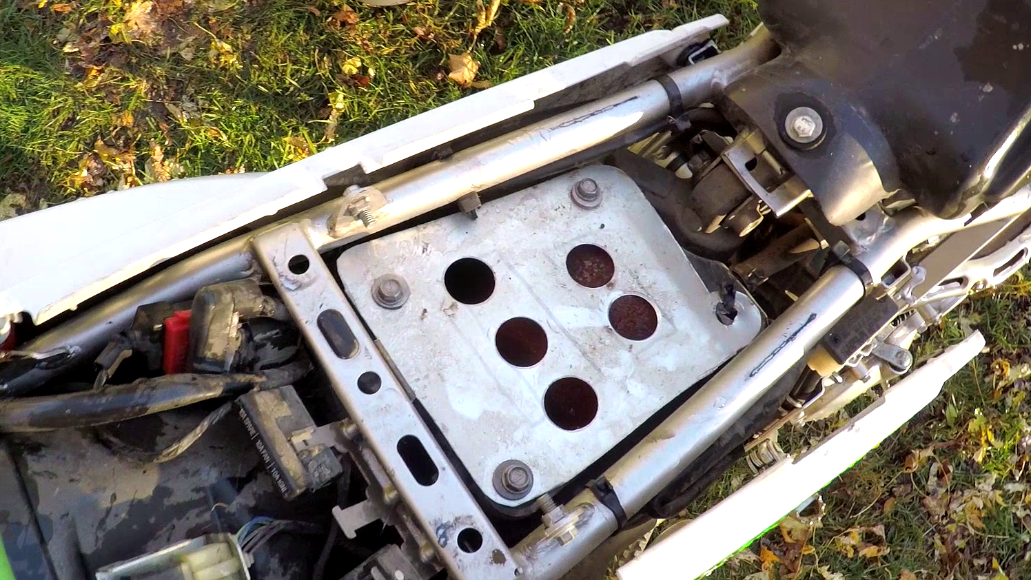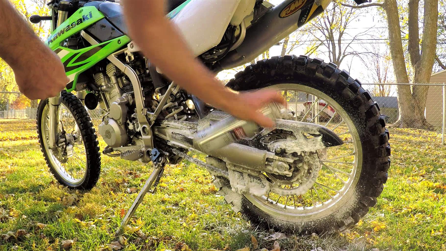When I picked up my KLX250S, the first thing I noticed was, it was bloody dirty. The poor thing looked like it was just not being ridden and had been sitting in a garage collecting dust. The chain and sprockets were filthy and the engine wasn’t much better. Hell, it even had cobwebs on it! Through all the grime though, I could see the potential for a clean, well looked after bike…hopefully. Nothing a bit of soap, water and elbow grease can’t fix I reckon.
