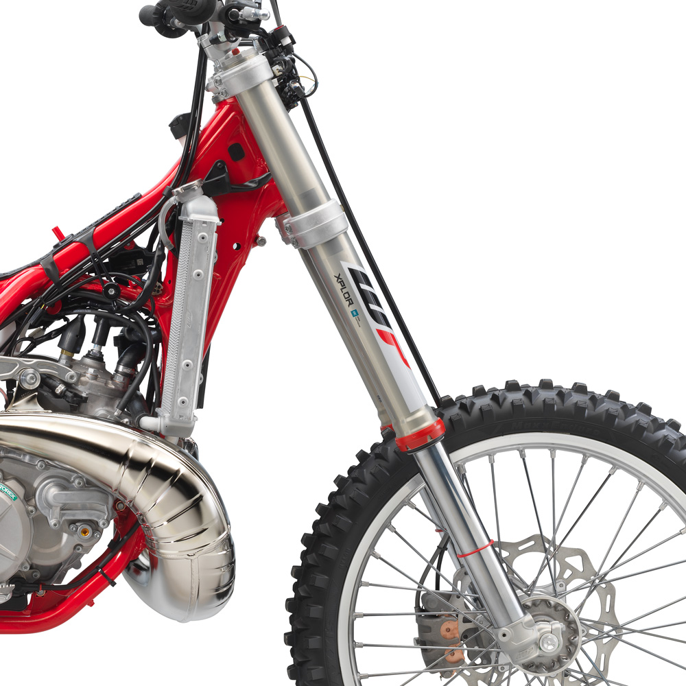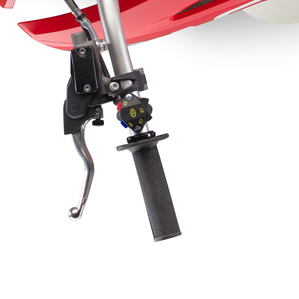 All the bikes have linkage rear suspension (a positive if you ask me), no map switch, silver unbranded rims made by Excel, silver unbranded handlebars made by Nekken, different expansion chambers on the two stroke, Maxxis enduro tyres, a slightly different swing arm, forged three way adjustable triple clamps and Braktec brakes and hydraulic clutch instead of Brembo’s.